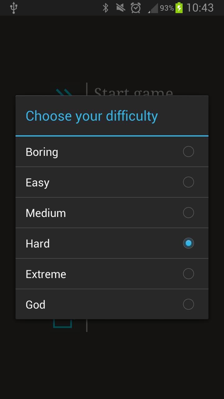 Das Ziel dieses winzigen Spiels ist es, den weißen Kreis 40 Mal zu berühren und seine Größe bei jedem Klick zu verkleinern. Unglücklicherweise ändert es nach dem Klicken seine Position zufällig. Abhängig von der Schwierigkeit wird es auch ein wenig wachsen. Wenn der Kreis seine Startgröße erreicht hat, verlieren Sie, wenn er seine Zielgröße erreicht (40 Klicks oder mehr kleiner), Sie gewinnen. Ein Spiel wird nicht einfacher als das!